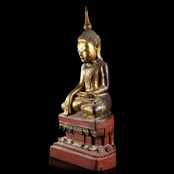 GRANDE BUDDHA IN LEGNO LACCATO E DORATO
