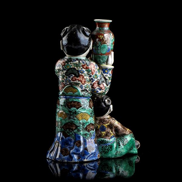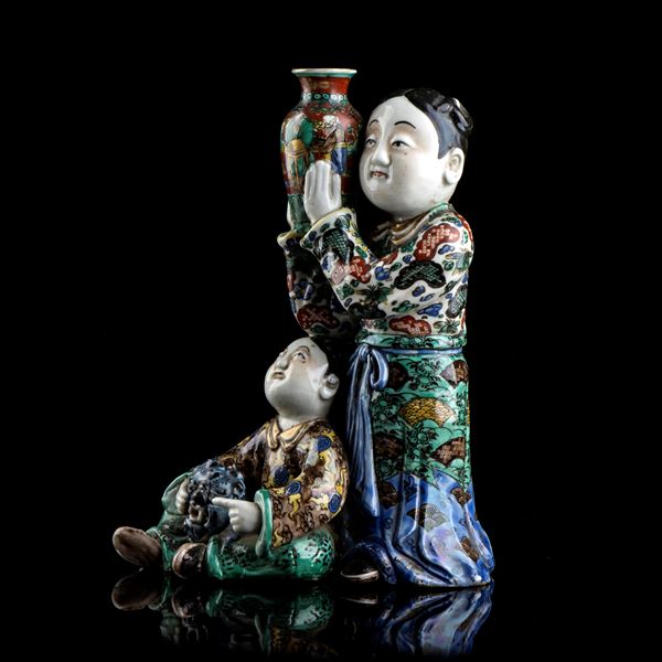 GRUPPO CON FIGURE IN PORCELLANA 'KUTANI' CON DECORO A SMALTI POLICROMI