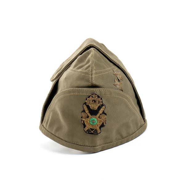 cotone verde, tipico della campagna dell'Africa Orientale, con bel fregio ricamato in canottiglia dorata su fondo di lana nero, ottimo stato