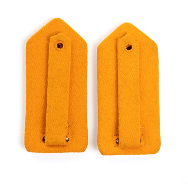 Coppia di controspalline per alta uniforme di ufficiale di artiglieria campale M.1934 , lastra in metallo dorato foderata di panno giallo arancio, ottimo stato