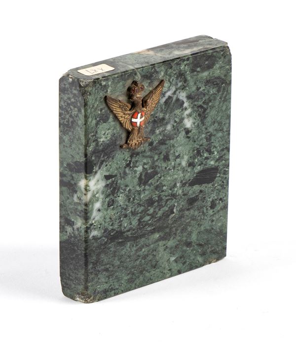 Fremacarte decorato con distintivo della Scuola di Stato Maggiore Re, Militaria...