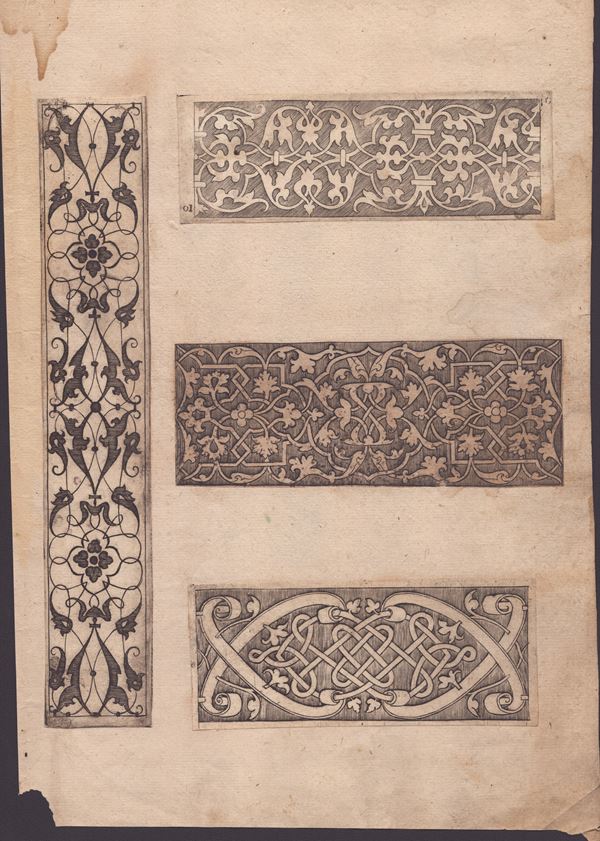 bulino, 50 x 144 mm; 55 x 148 mm; 55 x 134 mm; 42 x 240 mm; 4 impressioni controfondate su un foglio di carta vergata, buono stato