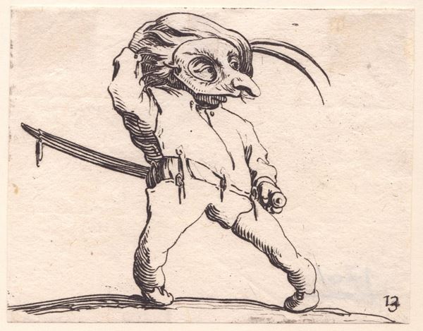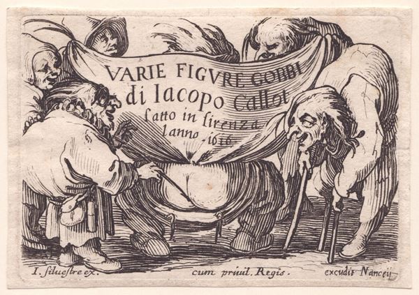 Lotto di frontespizio ed una incisione dalla serie, acquaforte, 62 x 90 mm (frontespizio); 64 x 82 mm (gobbo). Belle impressioni su carta vergata sottile. Frontespizio con piccoli margini di circa 1 mm, gobbo rifilato alla battuta della lastra. In ottime condizioni, con passe-partout.