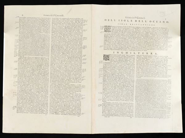 bulino e acquaforte, 48,5 x 88 cm. Tratta da l'Isolario dell'atlante veneto. Bellissima, fresca e nitida impressione su due fogli di carta vergata uniti. Testo in italiano sul verso. Consueta piega centrale. In ottimo stato, con bella coloritura coeva.