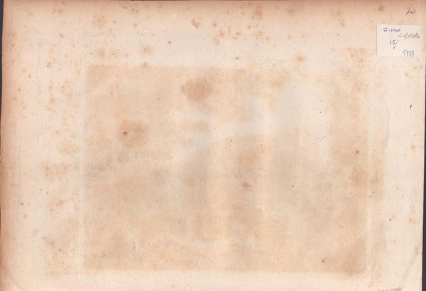 da Hubert Robert (1733-1808). Acquaforte, 18,2 x 24 cm (lastra); 24,5 x 34 cm (foglio). Stampata su carta vergata. Foglio in buone condizioni, con ossidazioni e lieve fioriture.
