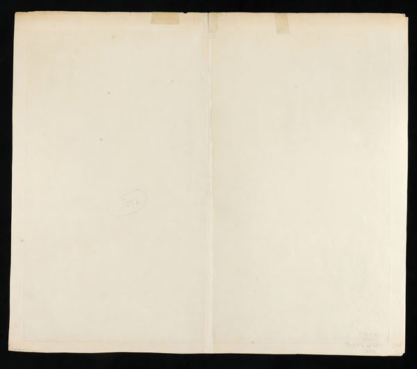 bulino e acquaforte, 51,5 x 59,5 cm. Mappa di Belgio. Bellissima, fresca impressione su due fogli di carta vergata con filigrana, uniti. Consueta piega centrale. Bella coloritura coeva. Ottime condizioni salvo leggerissima ossidazione lungo il bordo superiore.