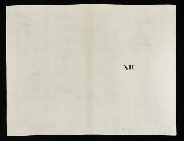 Acquaforte e bulino, 34 x 43,7 cm (lastra); 37,7 x 49,1 cm (foglio). Tratta da Atlante novissimo, che contiene tutte le parti del mondo, pubblicato a Venezia da Giambattista Albrizzi. Foglio in impeccabili condizioni. Stampata su carta vergata con filigrana (croce), due fogli uniti, con bellissima coloritura coeva.