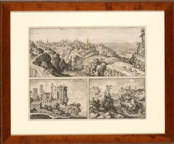 bulino, 28,7 x 35,6 (lastra). Tratta da "Topographiae Italiae..." di Martin Zeiller. Bella impressione su carta vergata, traccia di consueta piega editoriale. Margini non visibili, la stampa non è stata esaminata fuori dalla cornice (39 x 46 x 2 cm).