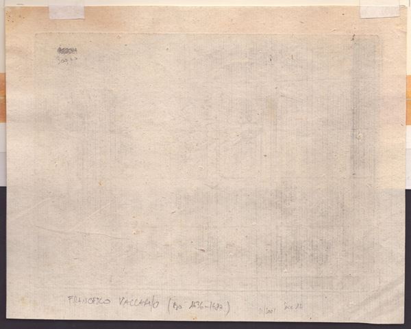 acquaforte, 129 × 174 mm (lastra), 156 x 200 mm (foglio). Bella, nitida e fresca impressione su carta vergata con filigrana (sirena). Foglio in ottimo stato di conservazione.
