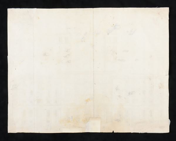 Grande foglio con tracce di piega centrale, rifilato al margine lastra, difetti ai bordi e levi ossidazioni. In buone condizioni generali.