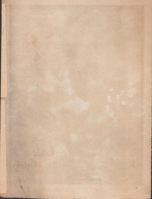 puntasecca, 240 x 178 mm (lastra); 264 x 200 mm (foglio). Bellissima, ben inchiostrata e fresca impressione su carta vergata sottile con filigrana (due fogli entro un cerchio), foglio in ottimo stato di conservazione.