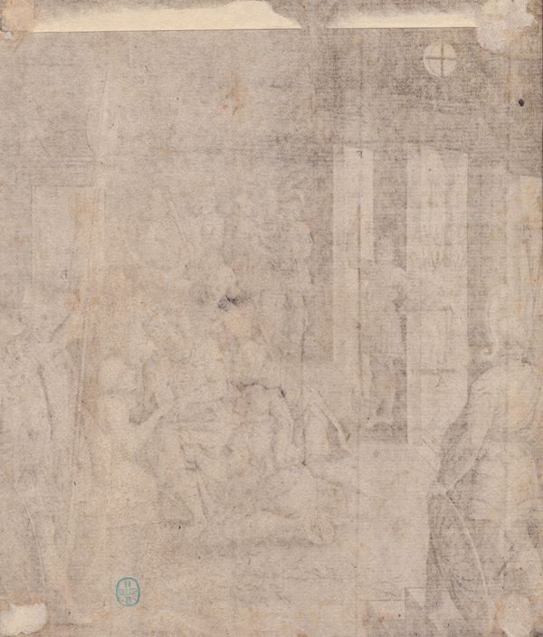 bulino, 165 x 140 mm. Dalla serie di 153 tavole 'Evangelicae Historiae Imagines'. Mauquoy-Hendrickx 2090. Ex collezione Hubert Georges Désiré Dupond (Lugt 3926 al verso). Stupenda prova in I stato (con le lettere della legenda). Stampata su carta vergata sottile. Esemplare rifilato. Foglio in ottimo stato salvo dei residui cartacei al verso.