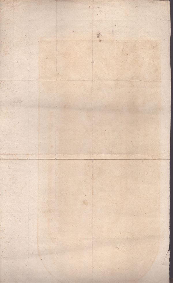 da una pala d'altare di Marco Palmezzano (Forlì, 1459-1539). Mezzatinta, acquaforte e xilografia, stampata à la poupée, con inchiostro blu bianco e nero. 427 x 215 mm (lastra), 472 x 262 mm (foglio). Bellissima impressione su carta vergata. Foglio con traccia di pieghe verticali e orizzontali. Margine destro quasi inesistente. Con passe-partout.