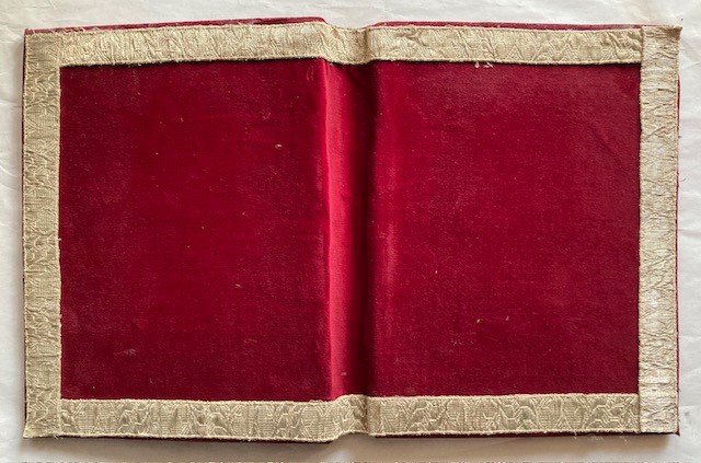 in folio piccolo, in velluto bordeaux con bella cornice cornice in argento sbalzato a mano.