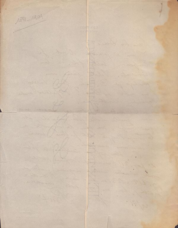 1 p. in-4 ( 28x22 cm ca.) alone d'umido al margine sx, segno di pìega al centro del foglio.