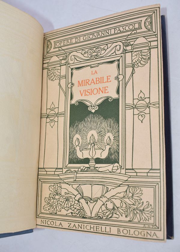 Seconda edizione per Zanichelli nella collezione Opere di Giovanni Pascoli. Legatura post. in piena tela con la brossura conservata.