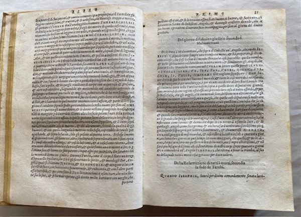 In 4° (cm 20x 15), buona legatura seicentesca con titolo in oro sul dorso, buon esemplare. Stampa xilografica sul frontespizio, iniziali xilografiche, testo stampato in corsivo, cc. (8), 457 (ovvero 451) (1 originale vuoto).
