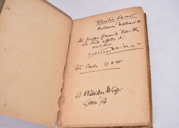 Prima edizione, esemplare con bella dedica autografa dell’A. Copertina con difetti e mancanze in part. al dorso.