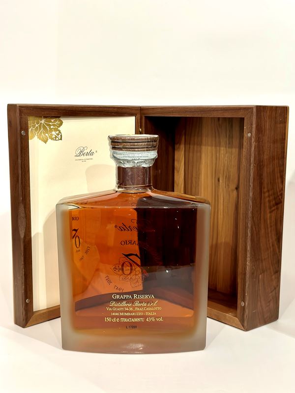 Italia, Grappa 1,5 l. - 43% vol.Livello: entro il collo (WN).Confezione: scatola di legno originale (OWC).Condition report: etichetta e capsula in perfette condizioni.