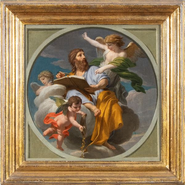 Il dipinto costituisce il modello per uno dei tondi a decorazione dei pennacchi della cupola del Duomo di Urbino, raffiguranti i quattro evangelisti. Oltre al San Matteo realizzato da Corvi gli altri tre evangelisti furono affidati all'esecuzione di Giuseppe Cades (San Marco), Antonio Cavallucci (San Giovanni) e Pietro Tedeschi (San Luca).