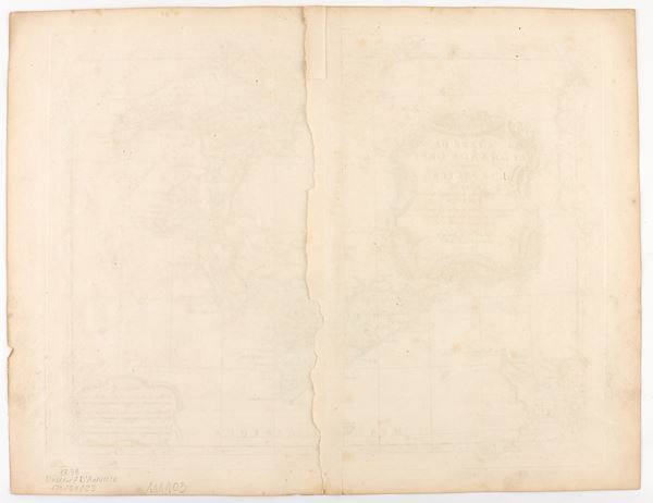Mappa del Sud Italia con Sicilia. Fresca impressione su carta vergata con doppia filigrana. Foglio in ottimo stato salvo consueta piega centrale editoriale e leggere brunitura lungo i bordi. Colorata a mano.