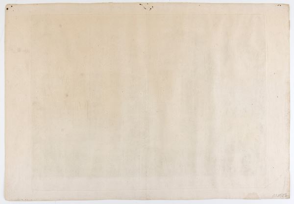 Bellissima, fresca impressione su carta vergata con doppia filigrana. Foglio in ottimo stato di conservazione, leggermente ossidato, traccia di una piega centrale poco visibile.