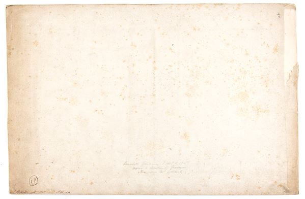 Inchiostro su carta vergata, controfondato su supporto antico. 250 x 428 mm (disegno), 337 x 517 mm (supporto).
