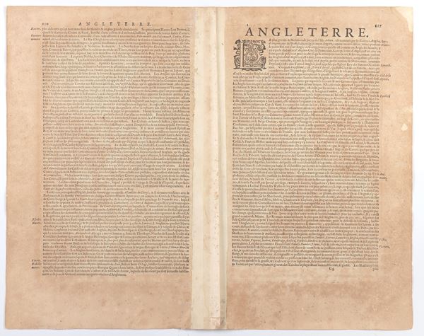 Stampata su carta vergata. Testo in francese al verso, Consueta piega centrale, rinforzata al verso. Leggere usure lungo la piega. Foglio uniformemente brunito. L'angolo superiore a sinistra ricostruito. Per il resto stato di conservazione molto buono.