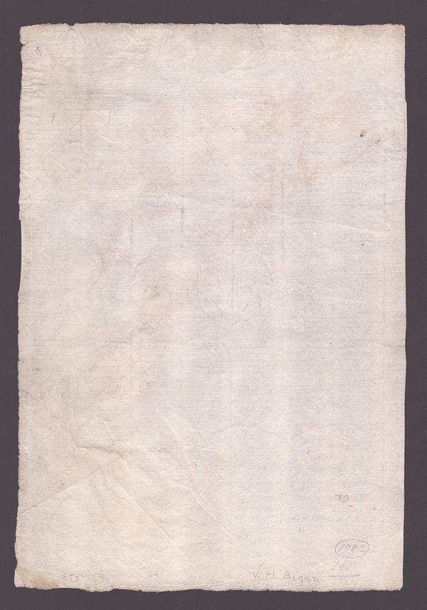 Inchiostro, matita nera e sanguigna su carta vergata sottile con filigrana. 300 205 mm
