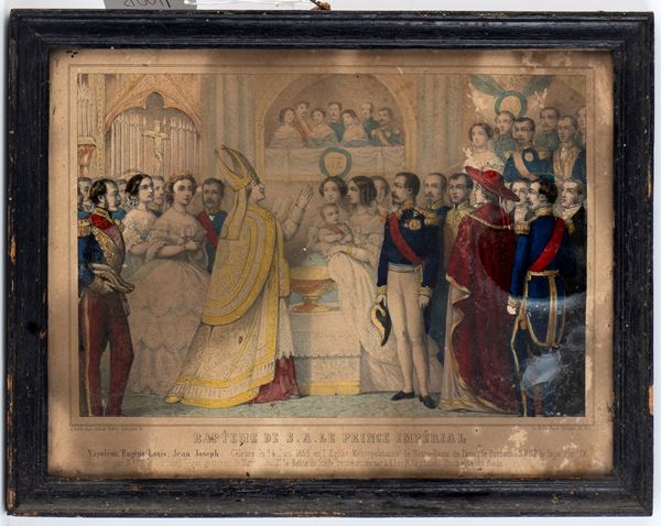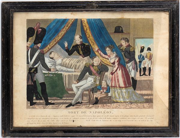 Raffiguranti La famiglia Bertrand sulla tomba di Napoleone; La morte di Napoleone; Napoleone Ferito a Ratisbona; Viglia della battaglia di Austerlitz; Battesimo dell'erede di Napoleone III.  Acune stampe presentano rottura del vetro.