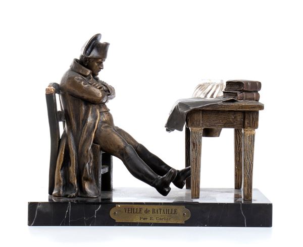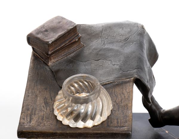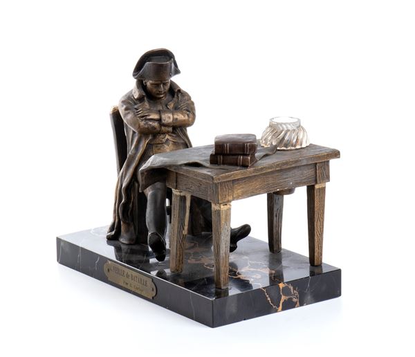 Calamaio in antimonio su base marmorea raffigurante Napoleone I