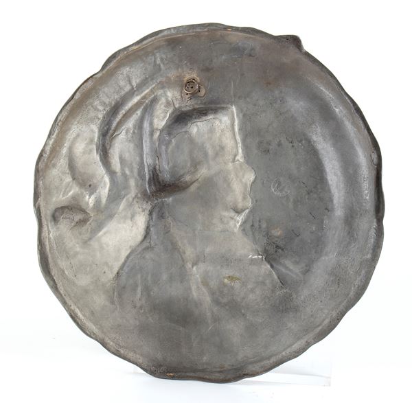 Grande placca circolare in peltro con busto di Napoleone e aquila imperiale