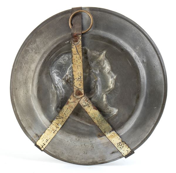 Grande placca in peltro con i busti di Napoleone e Giuseppina