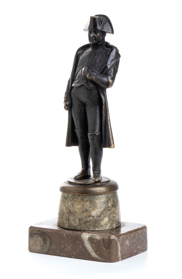 Scultura in bronzo di Napoleone con base in marmo, primo IV del XX
