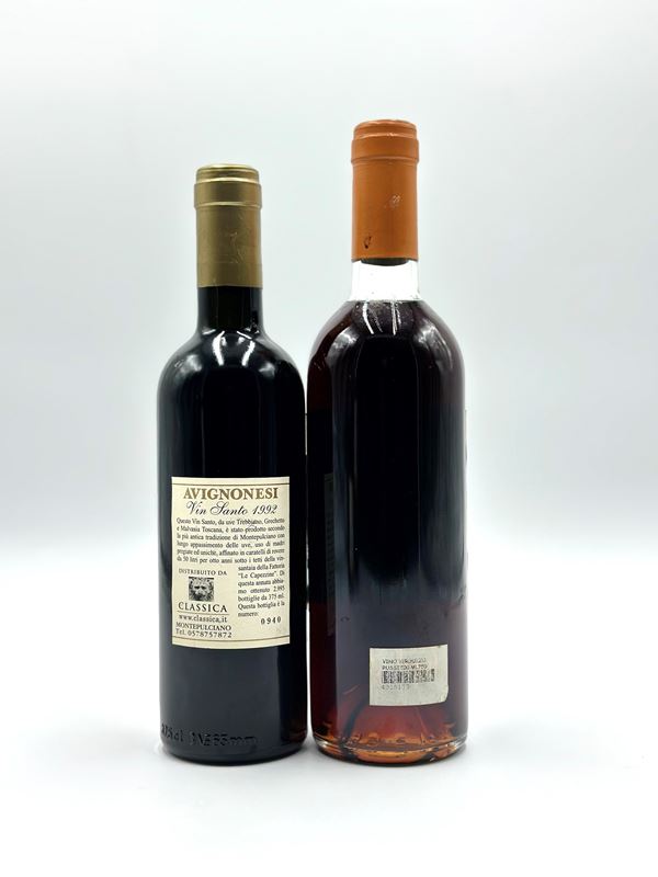 a) Toscana, Vin Santo di Montepulciano - 1 mezza bottiglia (hb) annata 1992.Livello: entro il collo (WN).Condition report: etichetta e capsula in perfette condizioni.b) Friuli Venezia Giulia, Verduzzo Friuliano IGT - 1 bottiglia (bt) annata 2000.Livello: entro il collo (WN).Condition report: etichetta in perfette condizioni e capsula in ottime condizion.