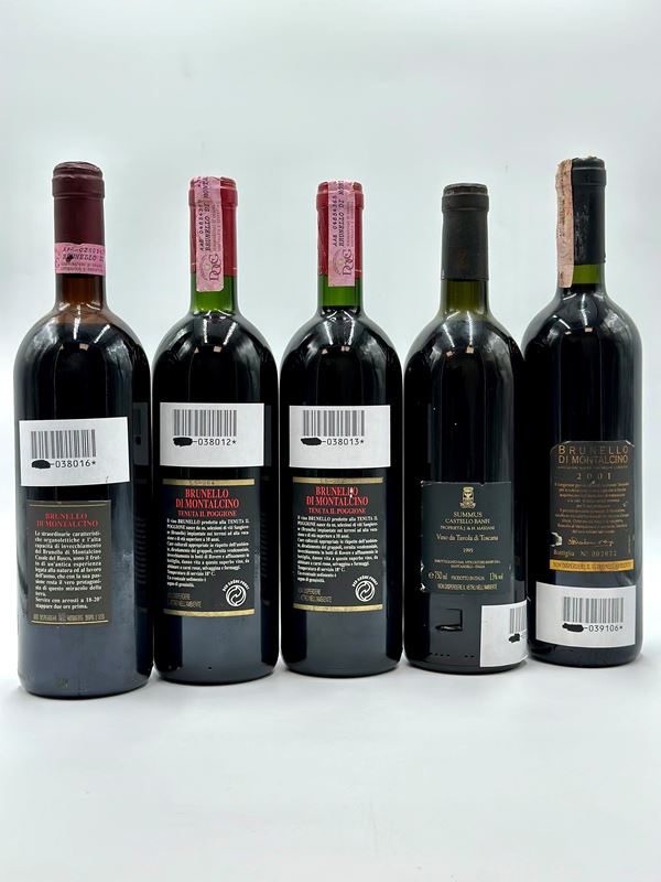 Selezione Brunello di Montalcino DOCG - 5 bottiglie (bt), annate 1990 e 1995.