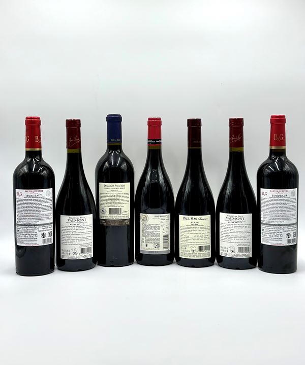Selezione Francia Vini rossi - 7 bottiglie (bt).Livello : entro il collo (WN).Condition report : etichetta e capsula in perfette condizioni.