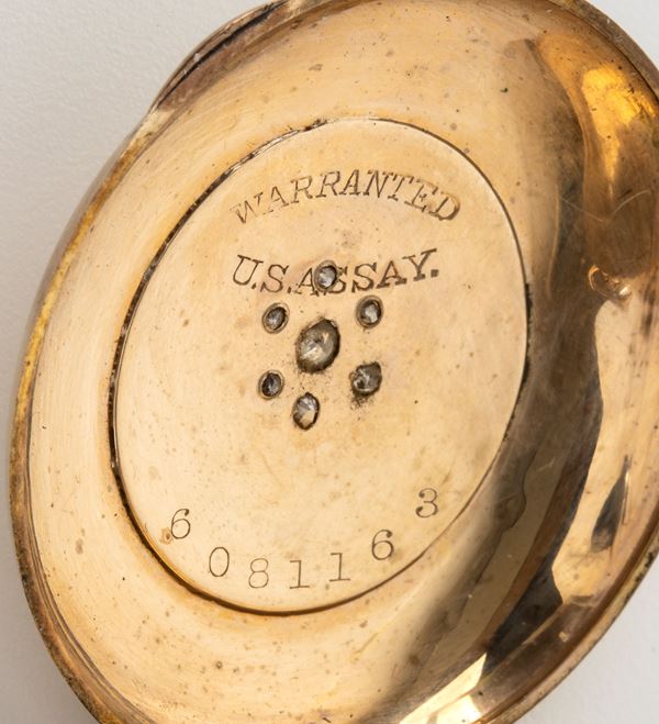 Punzonato "WARRANTED. US.ASSAY 6081163". Diametro cassa 33 mm. Peso lordo 30 gr. Peso netto stimato 10 gr.
