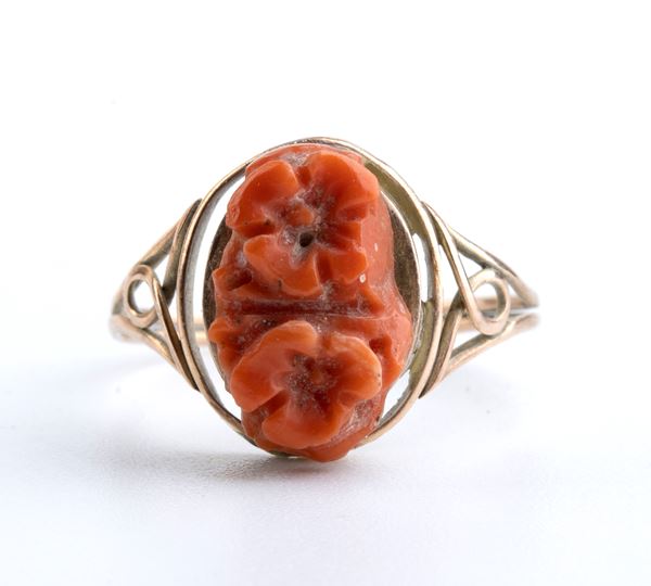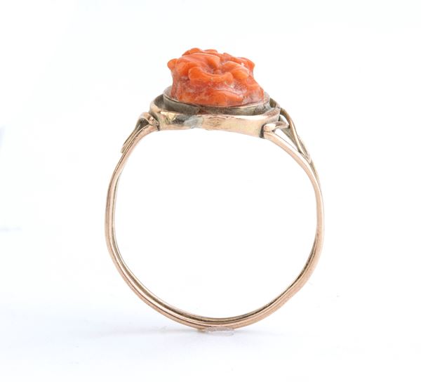 Anello in oro con corallo Mediterraneo, Fine XIX, inizio XX secolo