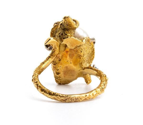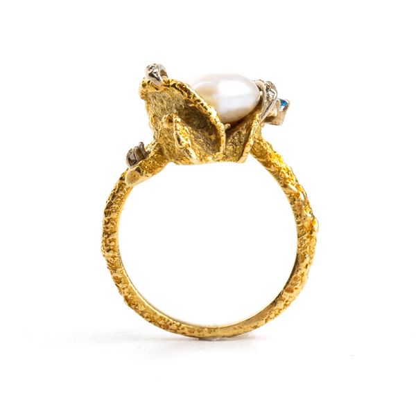 Anello in oro con perla e diamanti