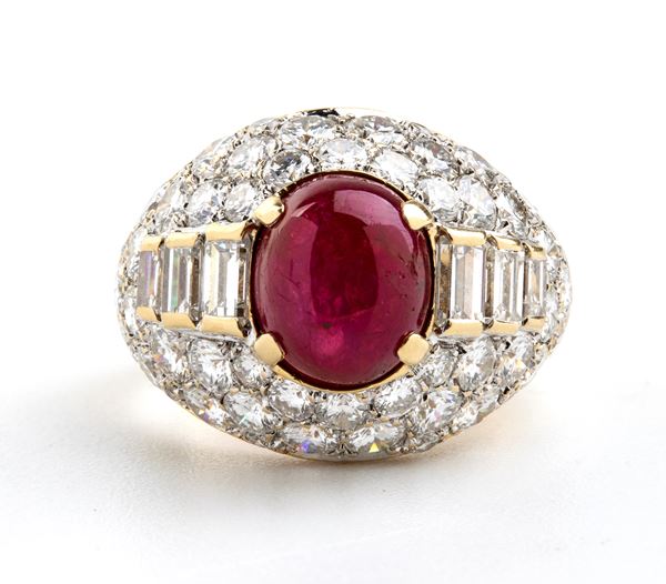 N. 01 rubino, forma ovale, taglio cabochon, circa 2.10 ct.