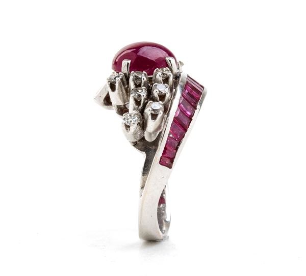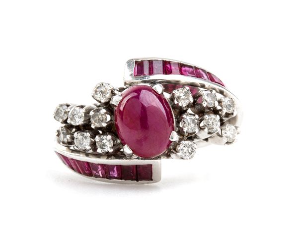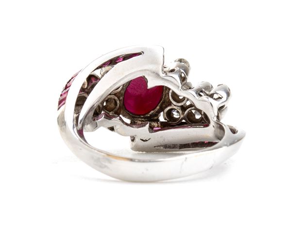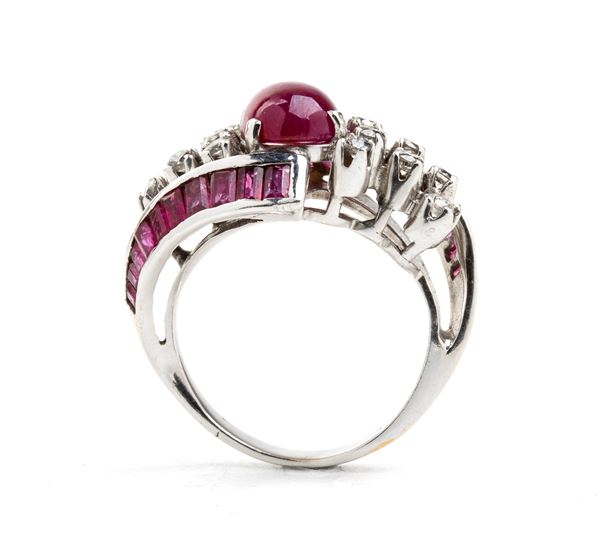 N. 01 rubino, forma ovale, taglio cabochon, circa 2.30 ct.