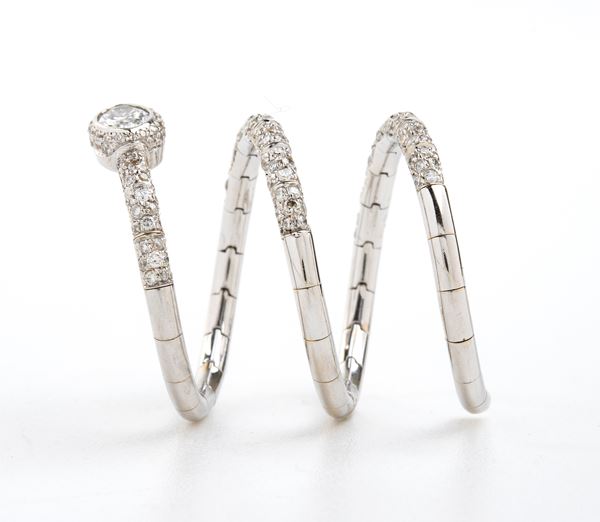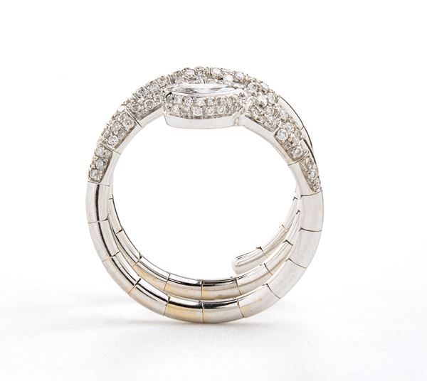 oro bianco 18k, modellato a forma di serpente, impreziosito da un pavé di diamanti, testa in diamante a navetta.