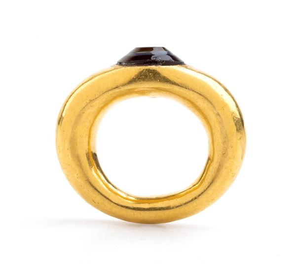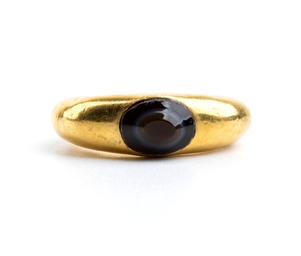 Anello stile archeologico in oro incastonato con agata