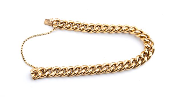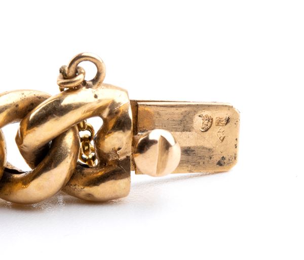 catena a maglia grumetta in oro giallo, con chiusura a scomparsa e catenella di sicurezza.