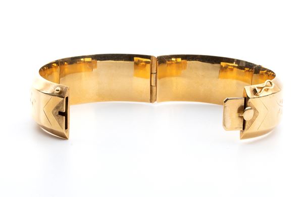 Punzonato "750". Peso 40 gr. Circonferenza interna massima 6.3 cm. Larghezza 2,3 cm.