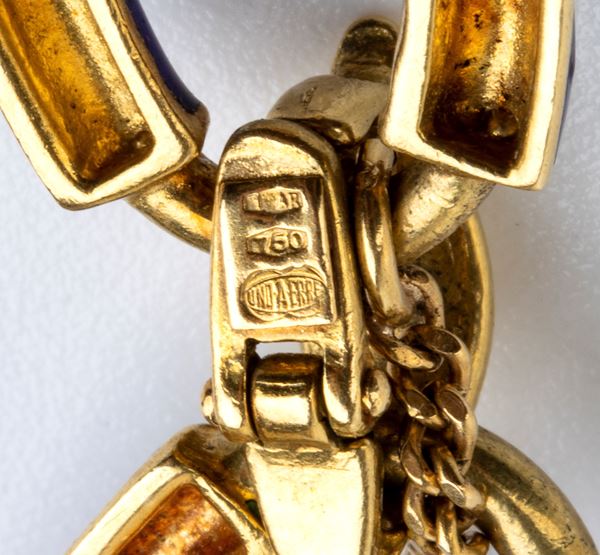 in oro giallo 18k, decorato con smalti blu.