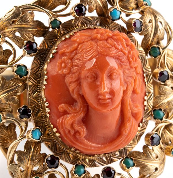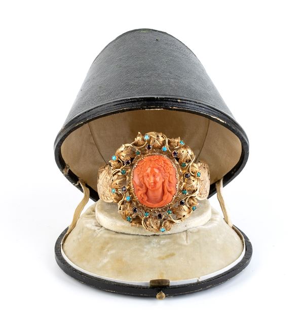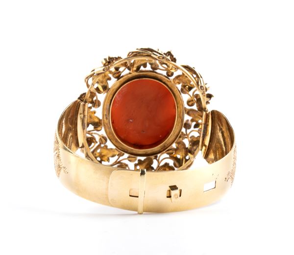 Bracciale rigido in oro con cammeo in corallo Mediterraneo, XIX secolo