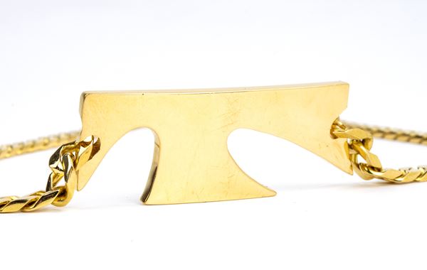 catena a maglia grumetta con pendente centrale, in oro giallo 18k. Firmato BULGARI.