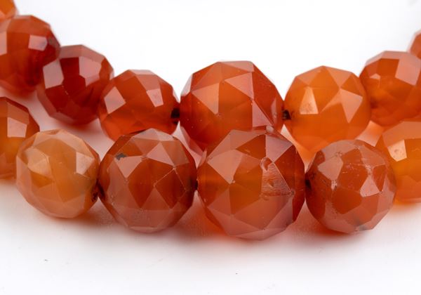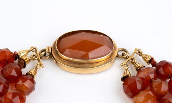 in oro a basso titolo e sfere sfaccettate di corniola.